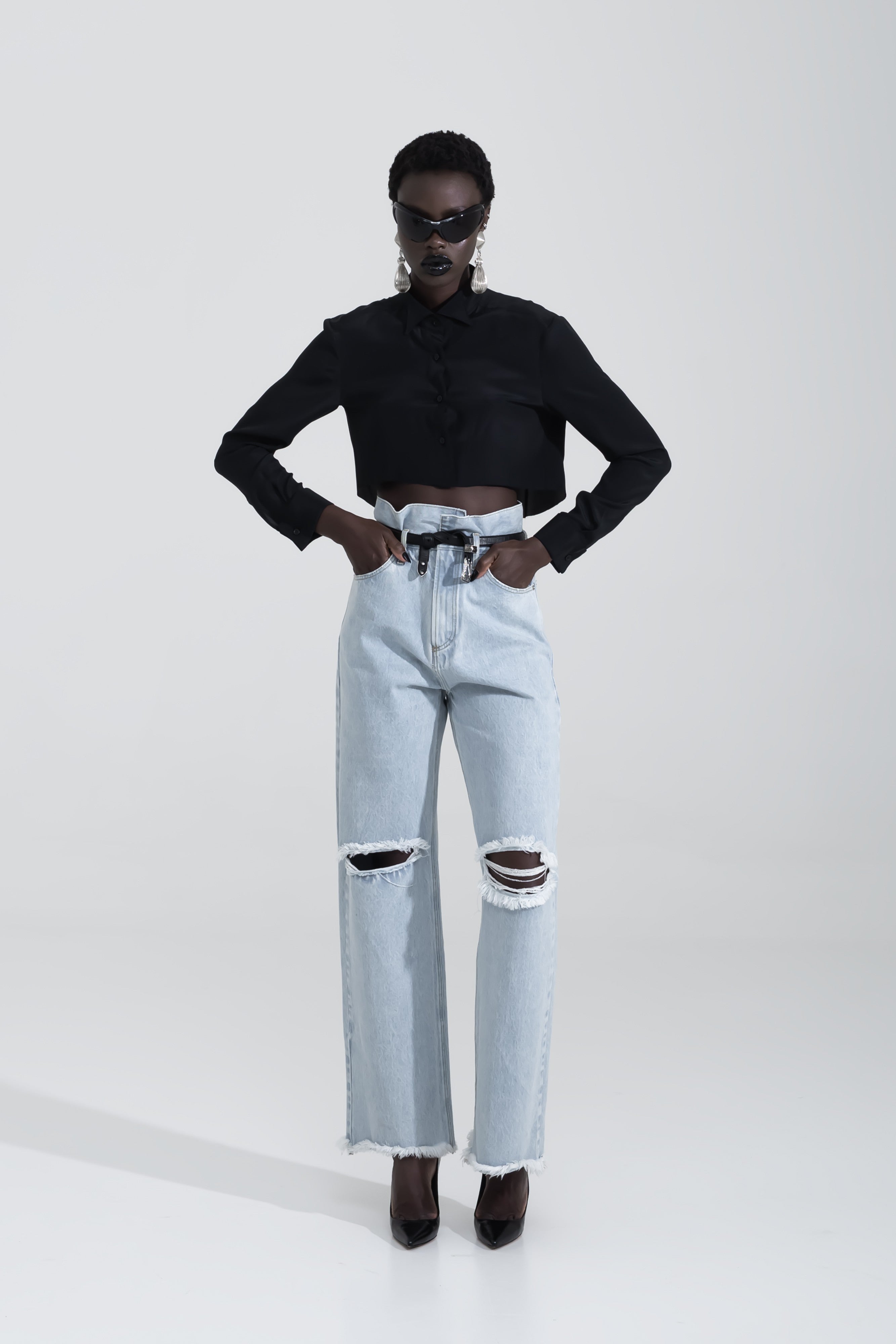 Step up your denim game with our oversized high rise jeans with a major cut. Designed for a relaxed, yet stylish look, these jeans feature a high rise waist and an oversized fit that flatters any body type