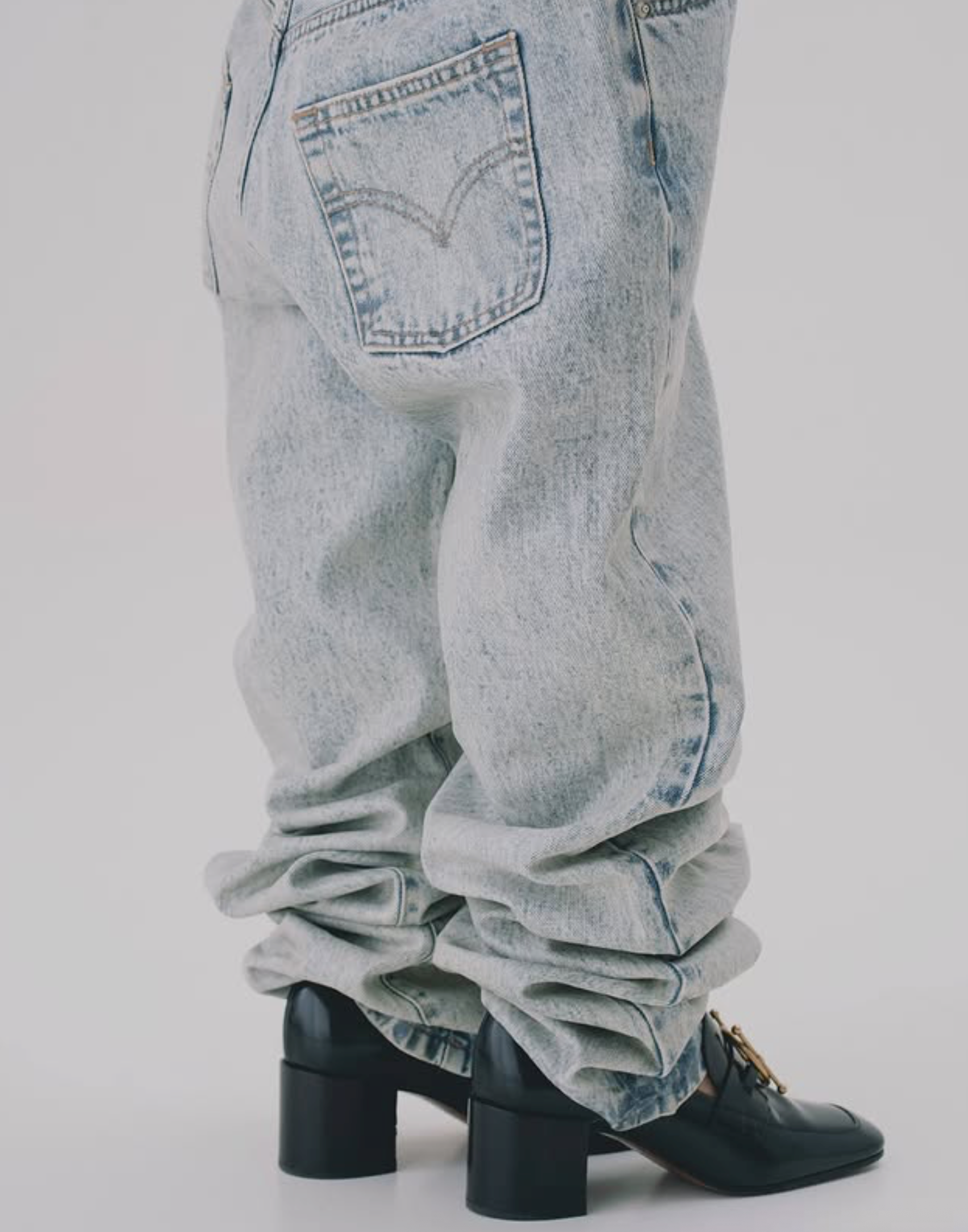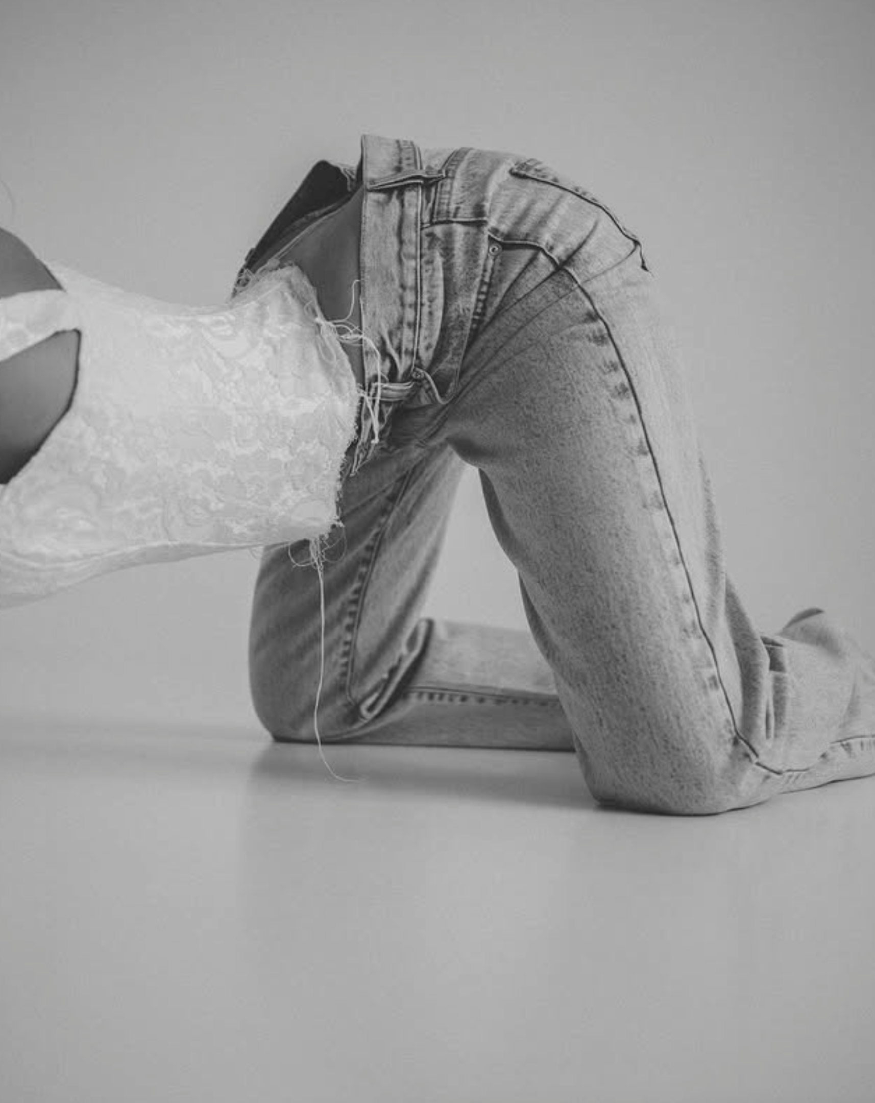 Denim's rugged clutch paradoxically elevates femininity, shaping form and essence to unveil a poised, naturally compelling you.